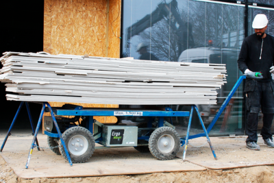 ErgoMover ist eine batteriebetriebener elektrischer Transportwagen, der für den harten Einsätze auf der Baustelle gebaut ist. Der ErgoMover ist für Transport und Handhabung von ganzer Paletten von Gipskartonplatten oder für Transports von Baumaterialien aller Arten dort einsetzbar, wo Gabelstapler oder andere Lastmaschinen nicht vorankommen.
