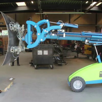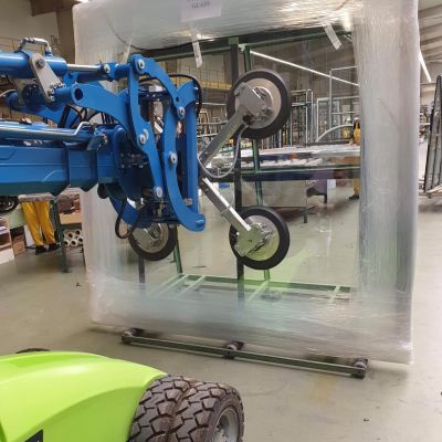 Der Winlet 1000 Glasrobotter mit Vorderradantrieb hat einer beeindruckenden Reichweite aber wegen der Dobbelter Teleskopauschub des Kranarms ist trotzdem kompakt!