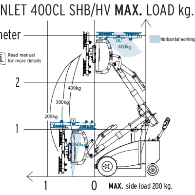 Der Winlet 400CL ist mit schmalen Lenk- und Antriebsrädern ausgestattet und nur 69 cm breit, wenn die Last sich seitlich an der Maschine befindet. Damit passt er durch Türöffnungen und ist auf beengtem Raum sehr manövrierfähig.