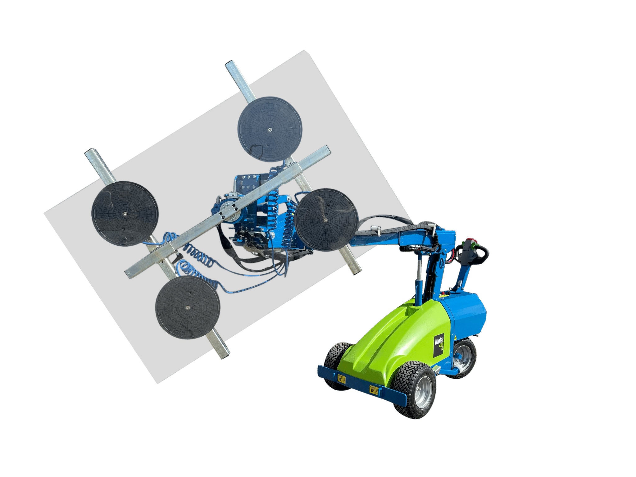Benötigen Sie einen besonders stabilen und geländegängigen Glaslifter mit größerer Reichweite, einer Hubkapazität bis zu 415 kg und hydraulische Drehung des Liftkopfs? Dann sind Sie hier richtig.