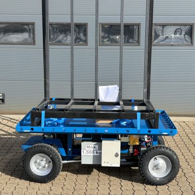 The trolley is powered by a strong rear axle and equipped with 4-wheel steering, ensuring a small turning radius and excellent maneuverability, even in confined or narrow spaces.