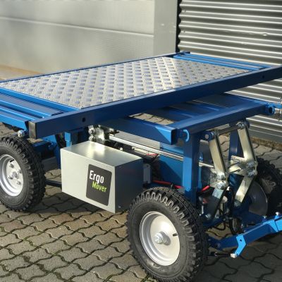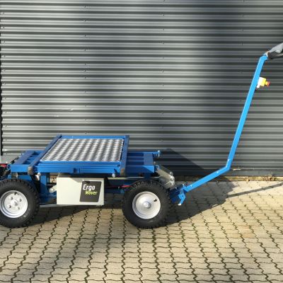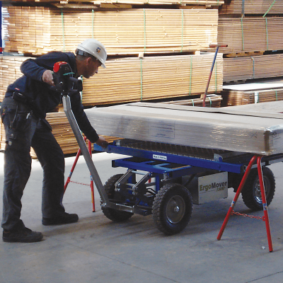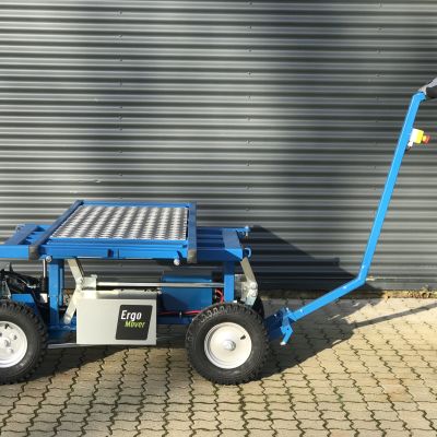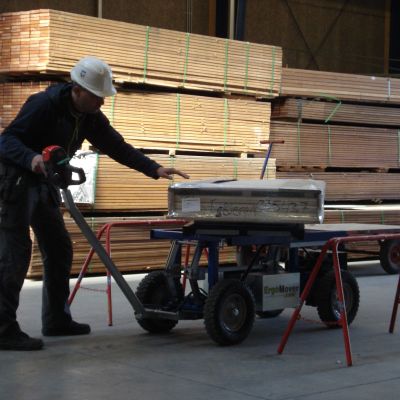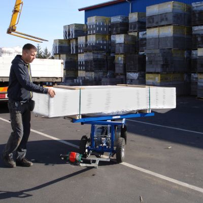 ErgoMover Lift & Go transport trolley is available in a version with manual 360 degree rotation of the platform. This makes it possible to optimize the use of space in narrow areas and is extremely functional when unloading material onto trestles.