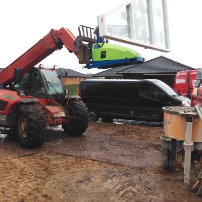 The Winlet 350TH is designed for mounting windows in high-rise buildings, where the height requirements are too large for the standard Winlet or where other building site conditions make access difficult. The Winlet 350TH comes with fork pockets that fit on all machines, with quick conversion to telescopic loaders. In addition, it has an autonomous hydraulic system which means it can operate independently of construction machines.