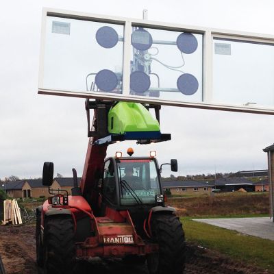 The Winlet 350TH is a unique vacuum lift for mounting on the forks of your telescopic loader or other machine equipped with forks. You can therefore fit the Winlet 350TH to all types of machines without any special mechanical quick-change couplings. With its unique wireless control, all functions are easily controlled even if you lift in heights of several meters.