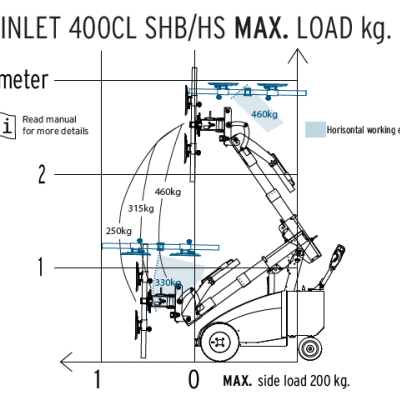 Winlet 400CL is equipped with narrow steering and traction wheels and has a width of only 69 cm when the load is on the side of the machine. This enables it to get through narrow openings and ensuring maximum maneuverability where space is limited.