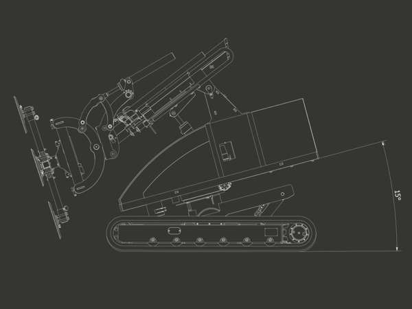 Levelling of the manipulator occurs completely automatically when the Dynamic Levelling System function is used, even on slopes and in very uneven terrain.