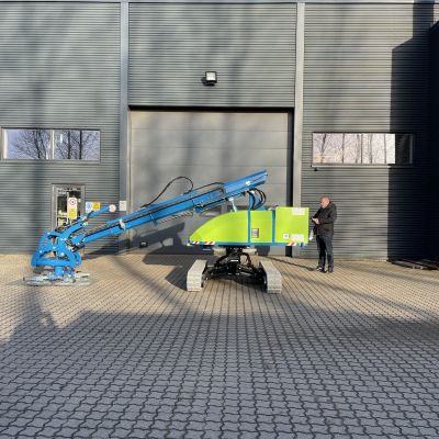 Winlet 1000 Crawler ER (Extended Reach) is an upgraded version of our tracked glazing robot. This version has an extemded telescopic arm reaching a maximum horisontal lifting height of just over 6 metres.