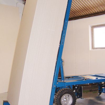 ErgoMover Manipulator er en unik og selvkørende gipspladevogn med 90 graders vip, som udover at kunne afsætte gipsstakke på bukke også kan rejse et bundt gips til lodret position.