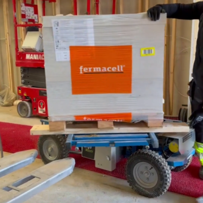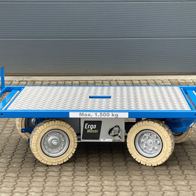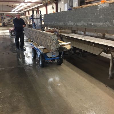 “Fordelen ved vores ErgoMover er, at den kan køre med næsten hvad som helst på byggepladsen. Det hydrauliske bord, gør det let at laste på bukke og fjernstyringen giver os frihed til at bevæge os omkring maskinen, så vi altid har et godt overblik under kørsel og i håndtering af lasten.”